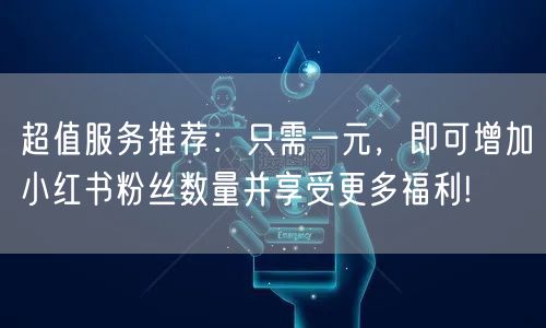 你是否在寻找一种有效的方式来增加你的小红书粉丝数量?现在有一个令人心动的机会等你来尝试!只需花费一元,即可增加你的小红书粉丝数量,并且享受更多超值福利!这是一个你绝对不能错过的机会!