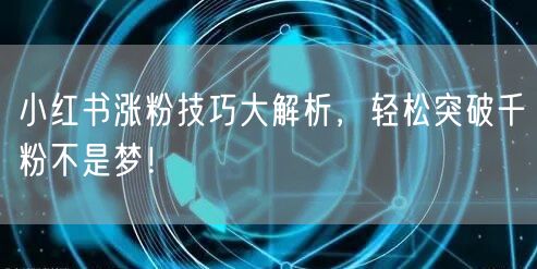 通过本文的解析和分享,相信你已经对小红书涨粉技巧有了更深入的了解。在实际操作中,不断尝试和优化,轻松突破千粉不是梦!未来,随着平台的发展和变化,我们需要不断学习和探索更多的涨粉技巧,为自己的小红书账号发展助力。