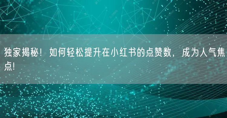 在小红书这个充满活力的社交媒体平台上,如何让自己的内容脱颖而出,吸引更多关注和喜爱,成为人气焦点呢?接下来,就让我们一起独家揭秘,如何轻松提升在小红书的点赞数!
