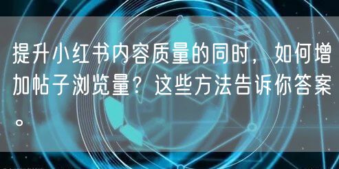 在小红书这个社交平台,内容质量与浏览量之间的关系是密不可分的。想要增加帖子的浏览量,就必须注重内容质量的提升。下面,我们将分享一些有效的方法,帮助你在小红书上实现这一目标。