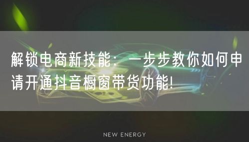 随着互联网的飞速发展,电商行业日益繁荣,各大平台纷纷推出各种新技能帮助商家提升销售。本文将教你如何申请开通抖音橱窗带货功能,解锁电商新技能,提升你的商品曝光和销售量。