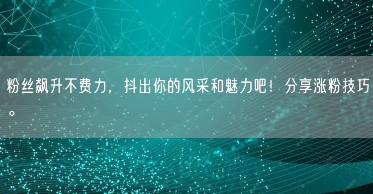 在社交媒体风靡的当下,拥有众多粉丝已经成为许多人追求的一种状态。如何轻松实现粉丝飙升,抖出个人风采和魅力呢?本文将为你分享一些实用的涨粉技巧。