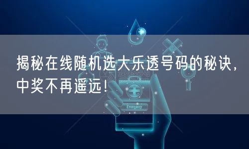 大乐透彩票吸引了无数人的目光,每个人都希望能够从中收获惊喜。而在互联网高度发达的今天,越来越多的人选择在线随机选号来参与大乐透。那么,如何在这个看似随机的游戏中找到一些秘诀,提高中奖的机会呢?接下来,让我们一起揭秘在线随机选大乐透号码的秘诀,让中奖触手可及!