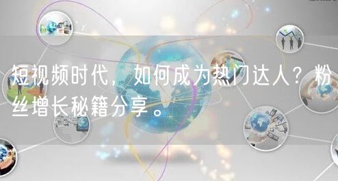 随着互联网的飞速发展,短视频已经成为了人们生活中必不可少的一部分。在这个时代,短视频平台成为了人们展示自我、交流互动的重要场所。越来越多的人希望通过短视频平台成为热门达人,吸引更多的粉丝关注。那么,如何才能在短视频时代成为热门达人呢?下面分享一些粉丝增长秘籍。