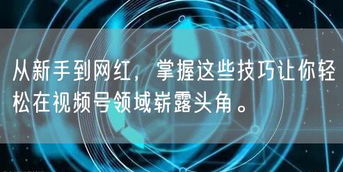 从新手到网红,掌握这些技巧让你轻松在视频号领域崭露头角。