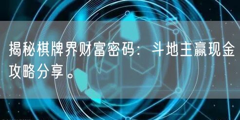 以上就是关于揭秘棋牌界财富密码:斗地主赢现金攻略分享的内容。希望本文能够对广大斗地主爱好者有所帮助,祝大家游戏愉快,赢得更多的现金奖励!