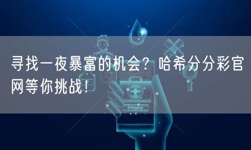 总之,寻找一夜暴富的机会并不容易,但哈希分分彩官网为你提供了一个挑战自己的平台。在这里,你可以体验刺激的游戏过程,赢取丰厚的奖励,开启财富之路!快来加入我们,一起挑战自己吧!