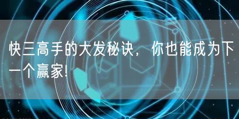 想要成为快三高手,掌握大发秘诀是关键!快三作为一种广受欢迎的彩票游戏,吸引了无数人的目光。如何在这个游戏中脱颖而出,成为下一个赢家呢?接下来,我们就来揭秘那些让你成为快三高手的必备知识和技巧!