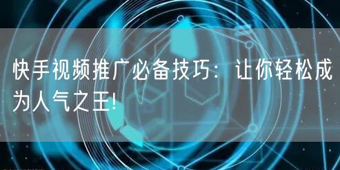 遵循以上必备技巧,你可以在快手平台上轻松提升人气,成为人气之王!同时,结合自身的创意和努力,不断尝试和优化,你一定能在快手视频推广中取得优异的成绩!