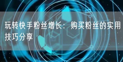 随着移动互联网的普及,短视频平台如快手等日益受到人们的喜爱。在快手上拥有众多的粉丝,不仅意味着更多的曝光机会,还能带来商业价值的提升。本文将分享玩转快手粉丝增长之购买粉丝的实用技巧,助你快速提升影响力。